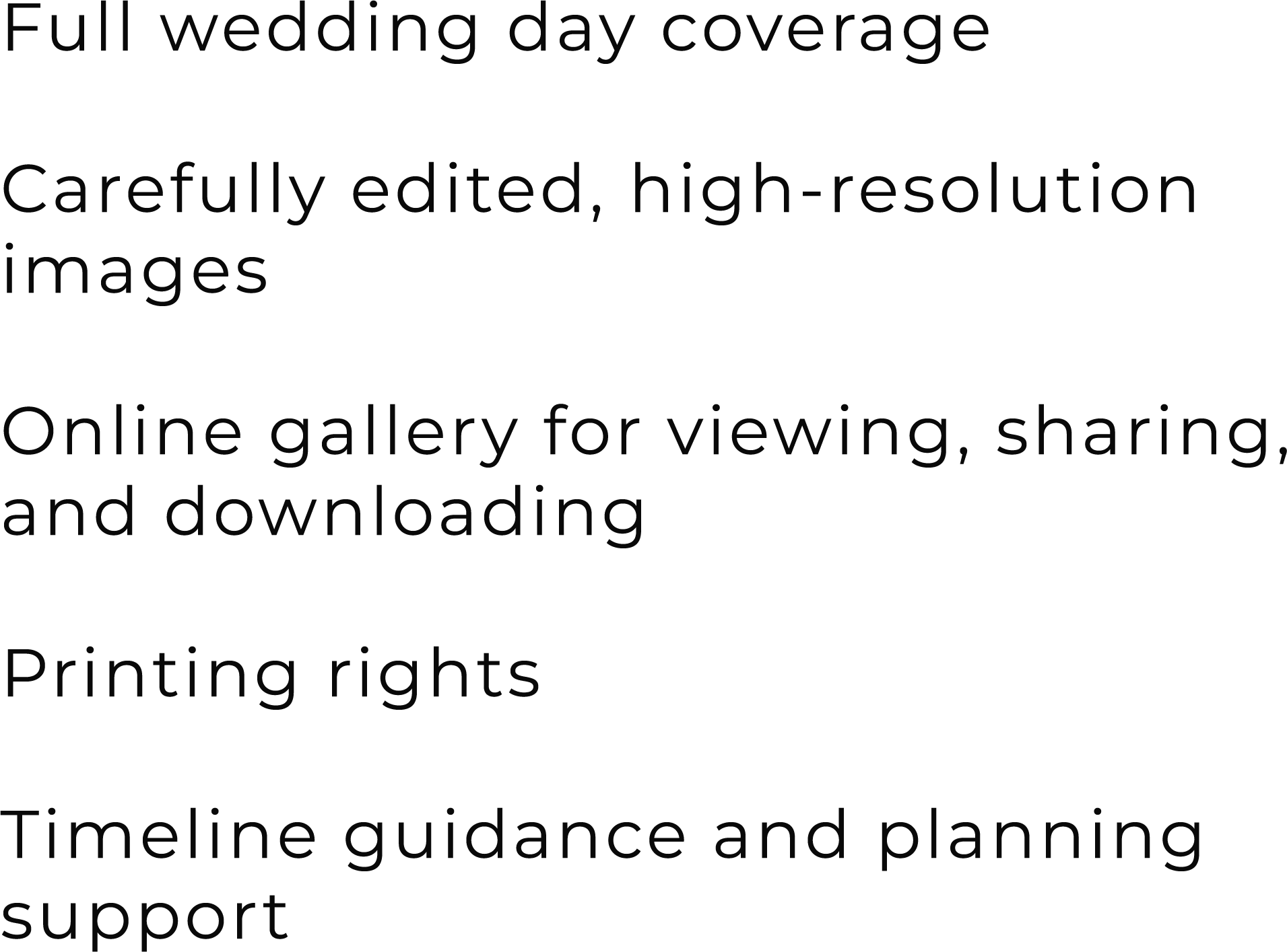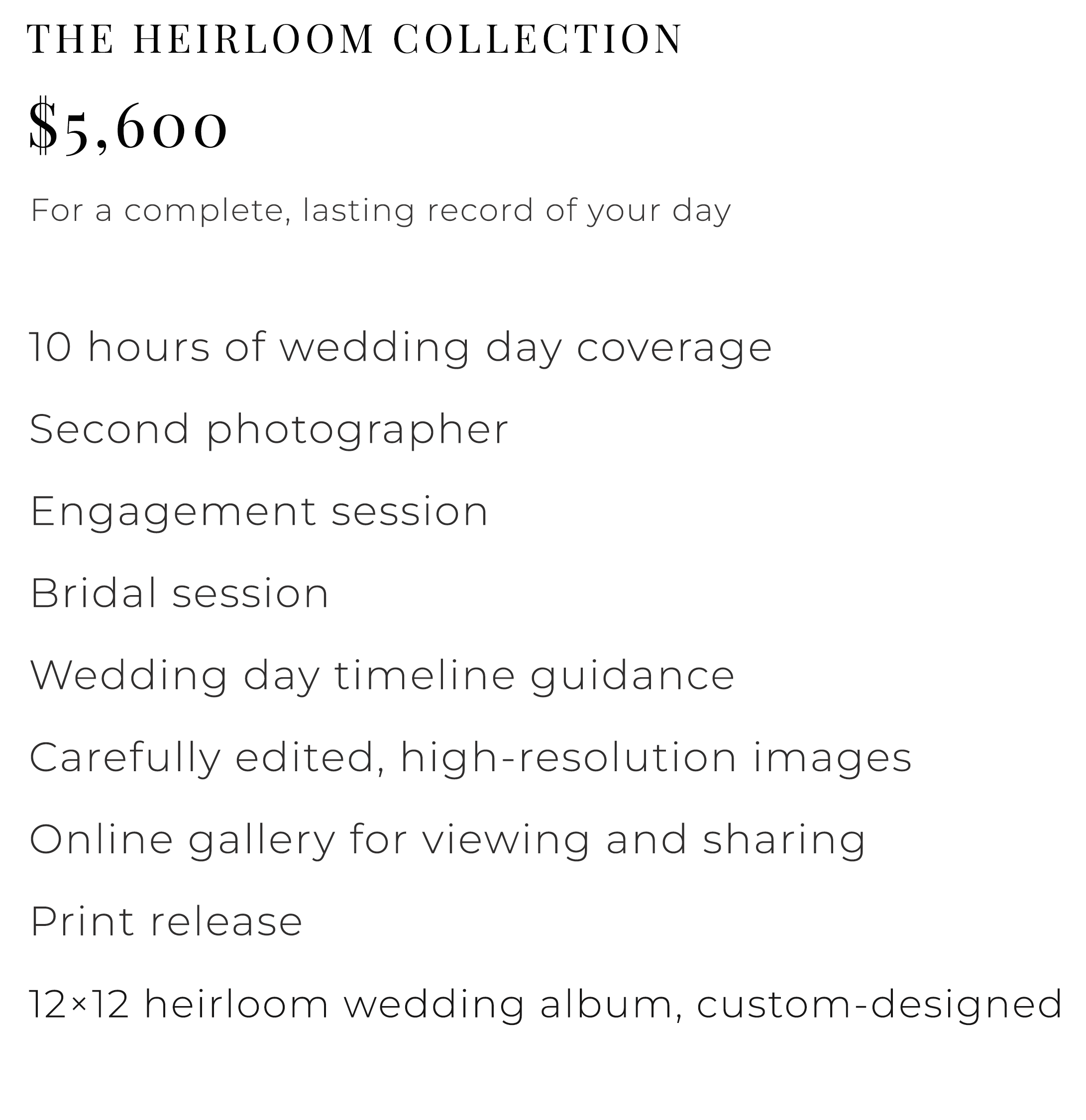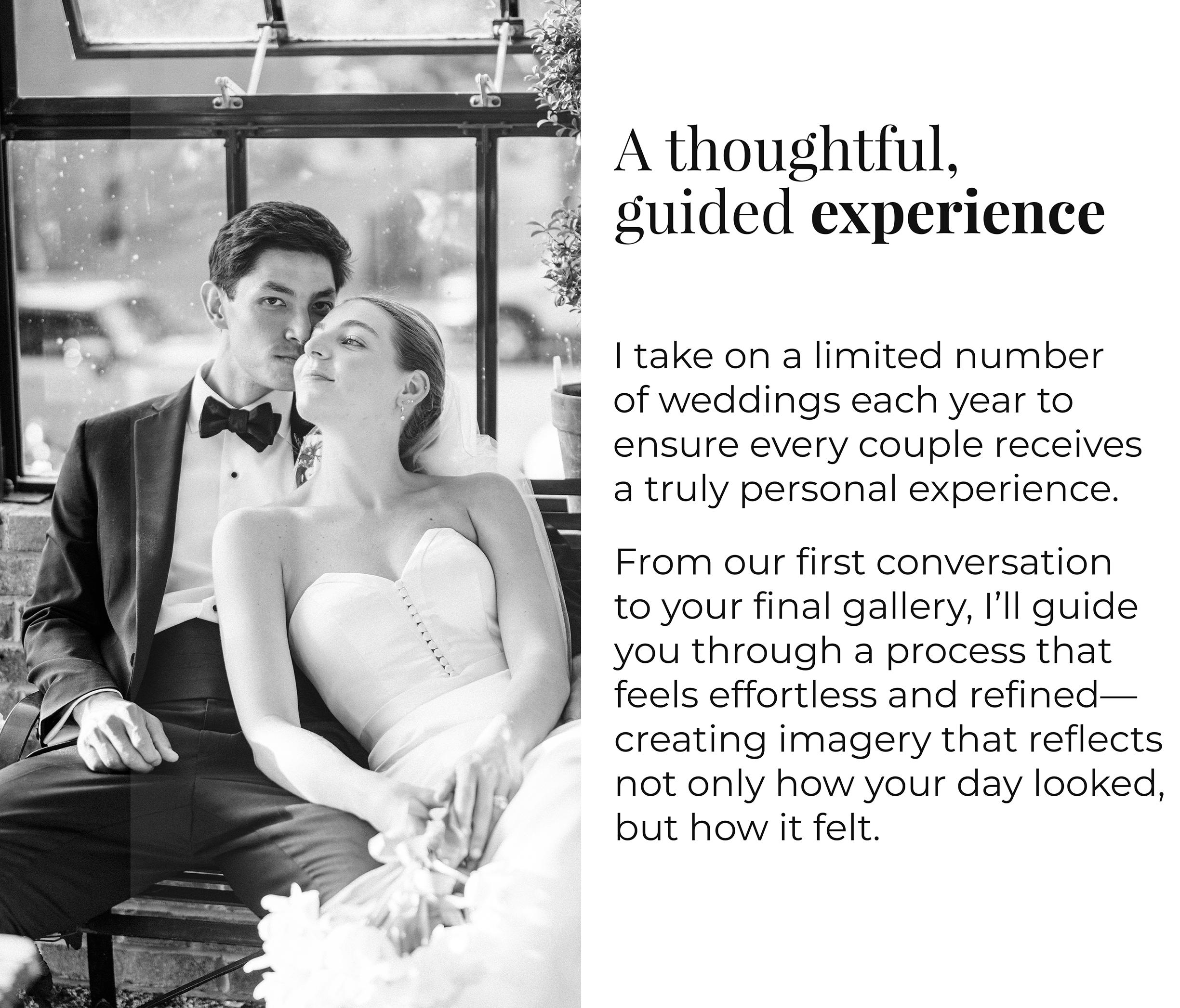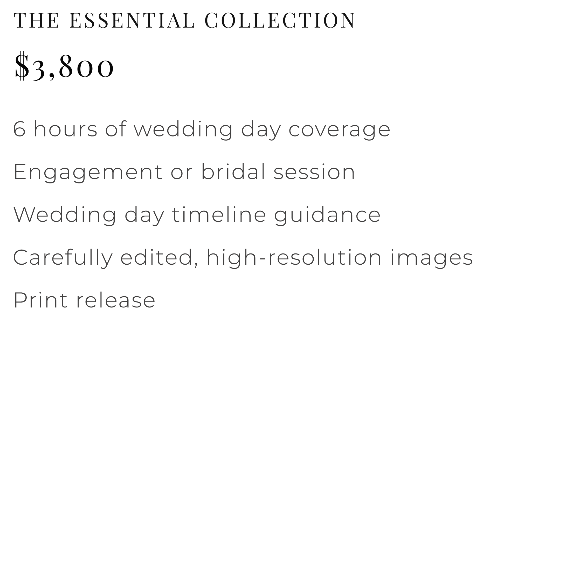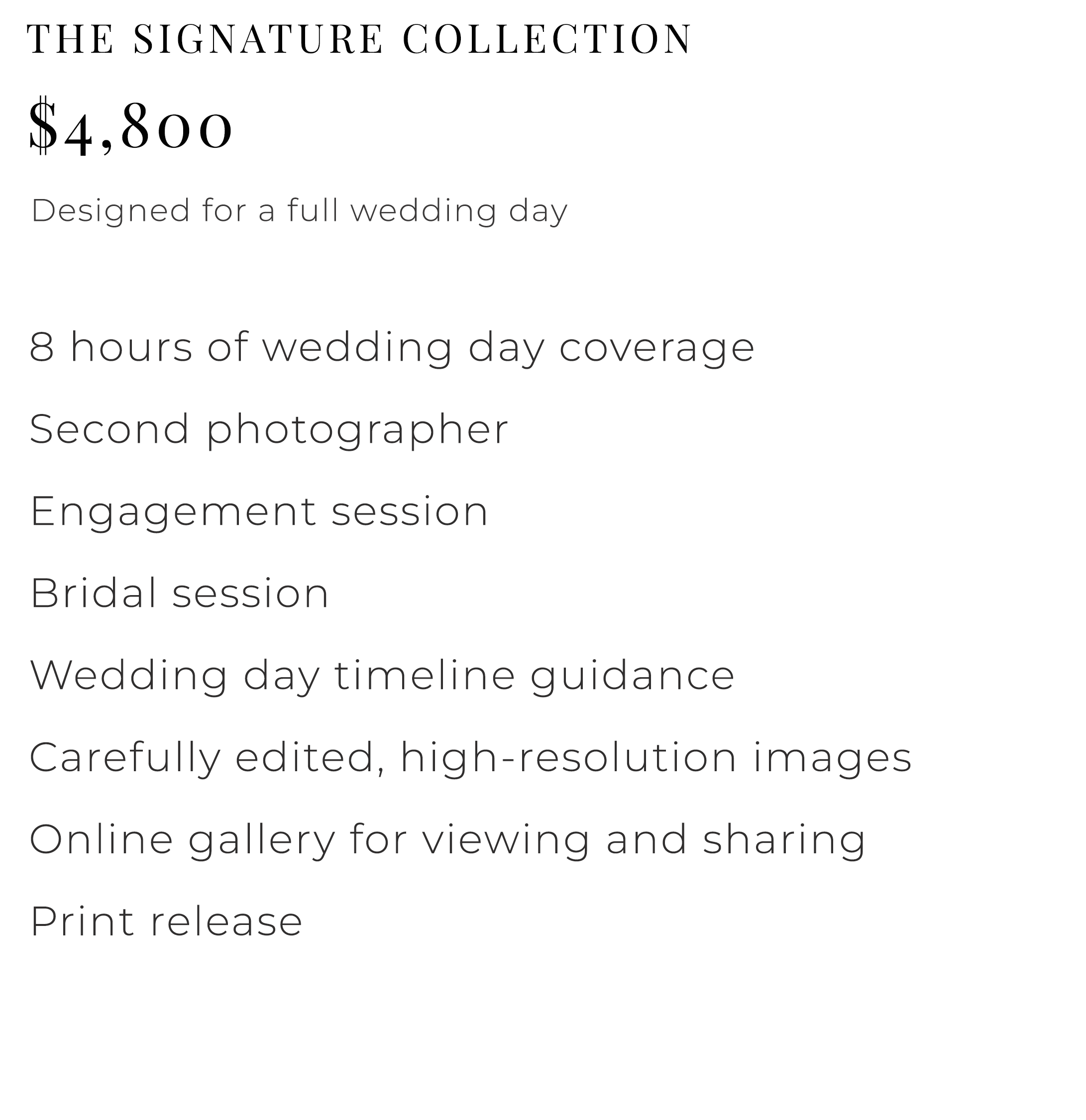 Each collection is designed to provide a seamless, thoughtful experience—so you can be fully present on your wedding day, knowing every detail is being documented with care.